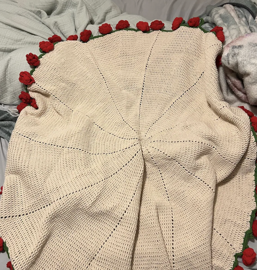 I bought this crochet flower blanket for my mom’s birthday and she was speechless. The detail in each flower is stunning, and it’s even prettier in person. You can tell it was made with real love and care. She keeps it folded like a bouquet when not using it!