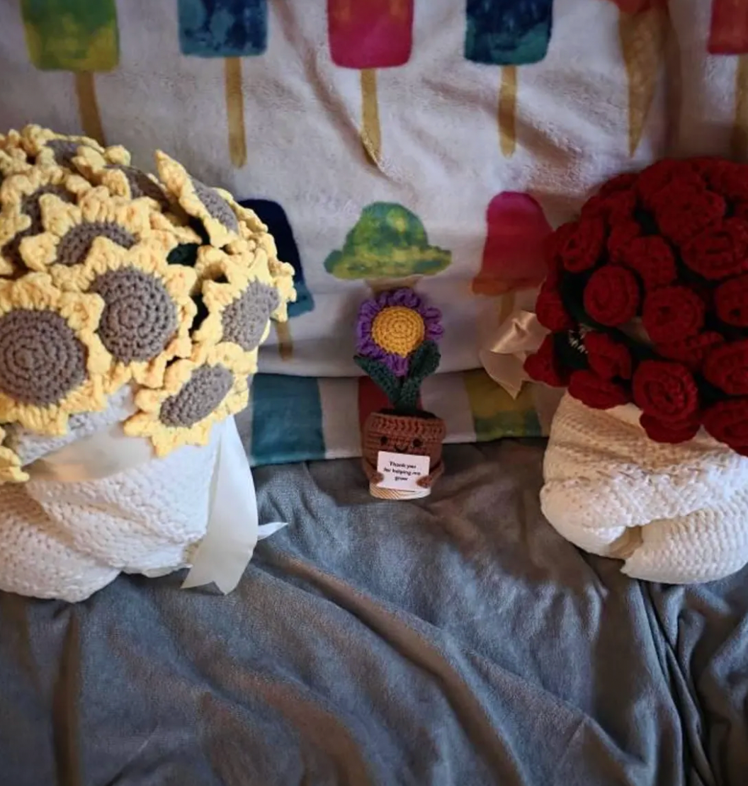 Unlike real flowers that fade, this handmade crochet bouquet blooms endlessly — a lasting symbol of love, care, and thoughtfulness. Each flower is carefully crocheted by hand, capturing the beauty of nature in soft, colorful yarn that never wilts.
